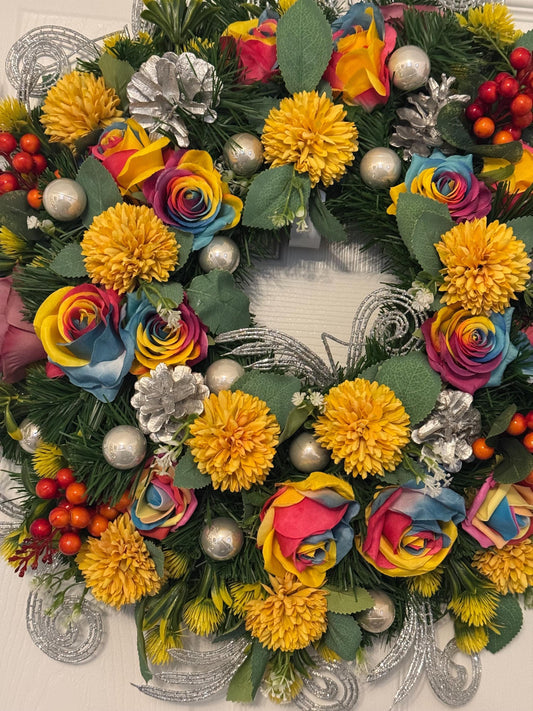 Vendor:Handmade with Love by Natz xRegular price £35.00 GBPRegular priceUnit price perSale price £35.00 GBPArtificial Rainbow Flower Wreath