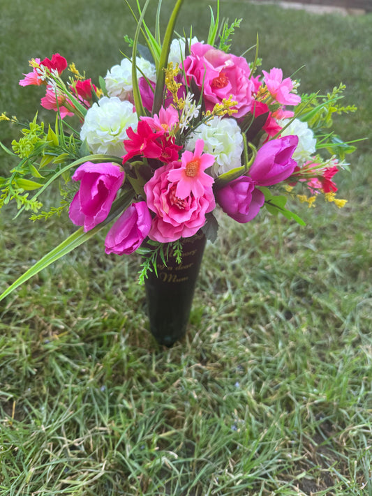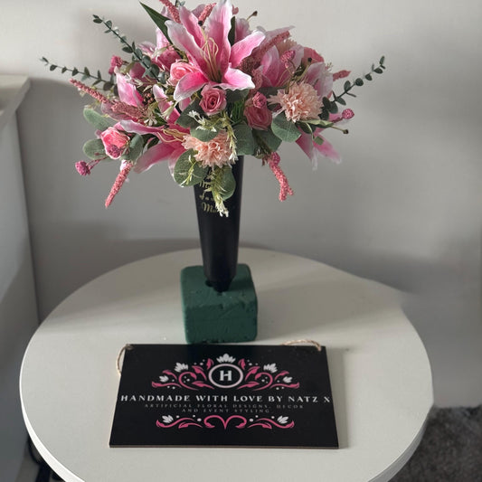 In Loving Memory Artificial Grave Spikes with pink Lillys. Ideal gift for a heavenly mothersday/ MUM/Nan/wife/gran and more